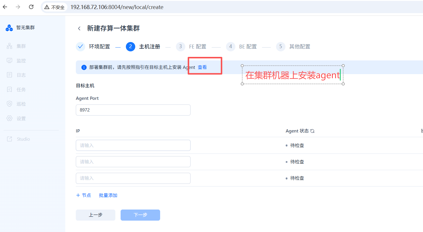 所有机器都安装agent,命令都要执行。如果每台服务器上有很多IP地址,可能需要设置内网ip.
